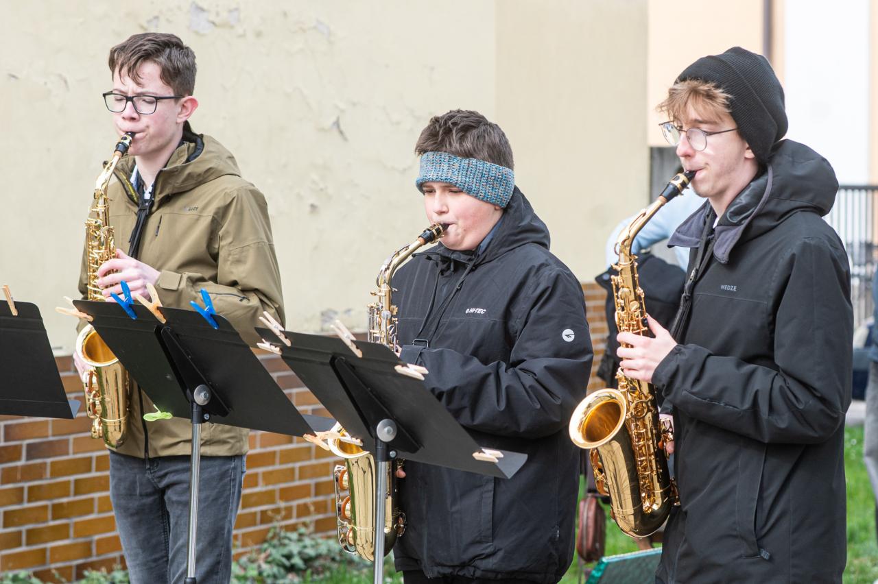 Počas spomienkového stretnutia zazneli swingové melódie v podaní Saxofónového kvarteta žiakov ZUŠ Dr. Janka Blaha. Krásna bodka za programom patrila vystúpeniu Viliama Farkasa s výberom z repertoáru Františka Krištofa Veselého, ktorého sprevádzal pedagóg Pavol Ivičič.
