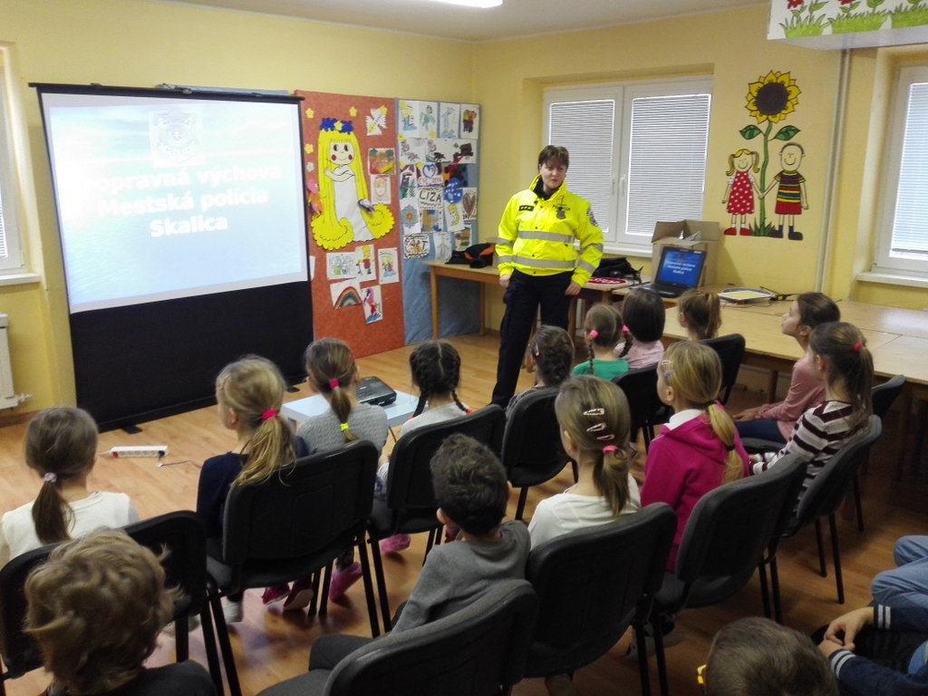 Mestská polícia Skalica v rámci svojej preventívnej činnosti dňa 21.02.2017 pripravila pre 25 detí navštevujúcich počas jarných prázdnin Centrum voľného času Skalica prednášku formou prezentácie názvom „Dopravná výchova“. Cieľom bolo zdôrazniť dôležitosť dodržiavania pravidiel cestnej premávky a posilniť bezpečné správanie sa detí na cestných komunikáciách.