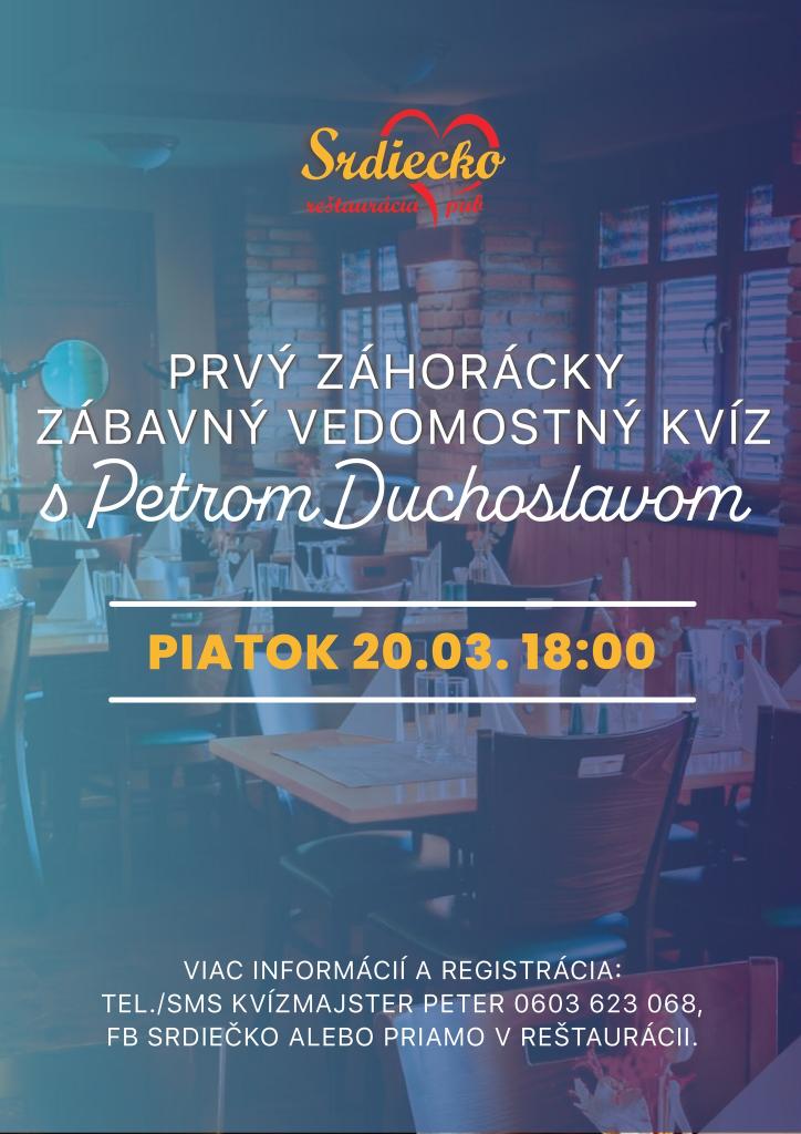 Kvíz sa bude konať, ak bude prihlásených aspoň 5 tímov (sledujte info na FB reštaurácie Srdiečko).